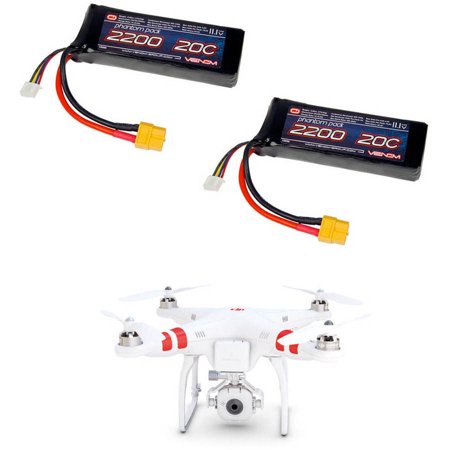 Related Product DJI Phantom FC40 Battery by Venom 20C 3S 2200mAh 11.1 LiPo x2 Packs with Venom UNI 2.0 Plug. Compatible with XT60 Plug, Deans Plug & EC3 Plug.
